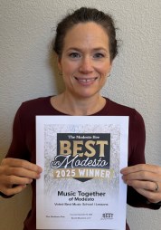 Every week in our music classes at Music Together of Modesto, babies, toddlers, preschoolers, and their caregivers come together to play together musically. Little ones love playing along in class, and the grownups love being a part of their children’s growth into confident music-makers. Everyone loves our award-winning songs that will have you singing and moving along in no time. Music Together® is the perfect family activity in Modesto! Scroll down to see a video of what parents say about Music Together...